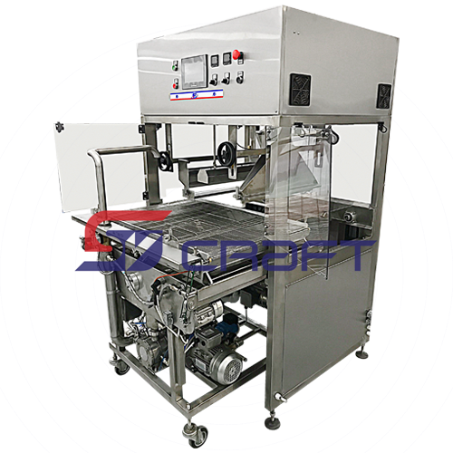 Линия глазирования RoboGlazLine от компании SV craft предназначена для глазирования кондитерских изделий: песочного печенья, конфетных масс, пралиновых масс, батончиков мюсли, протеиновых батончиков, фруктовых батончиков, батончиков гранола, глазированных сырков, зефира и других кондитерских изделий