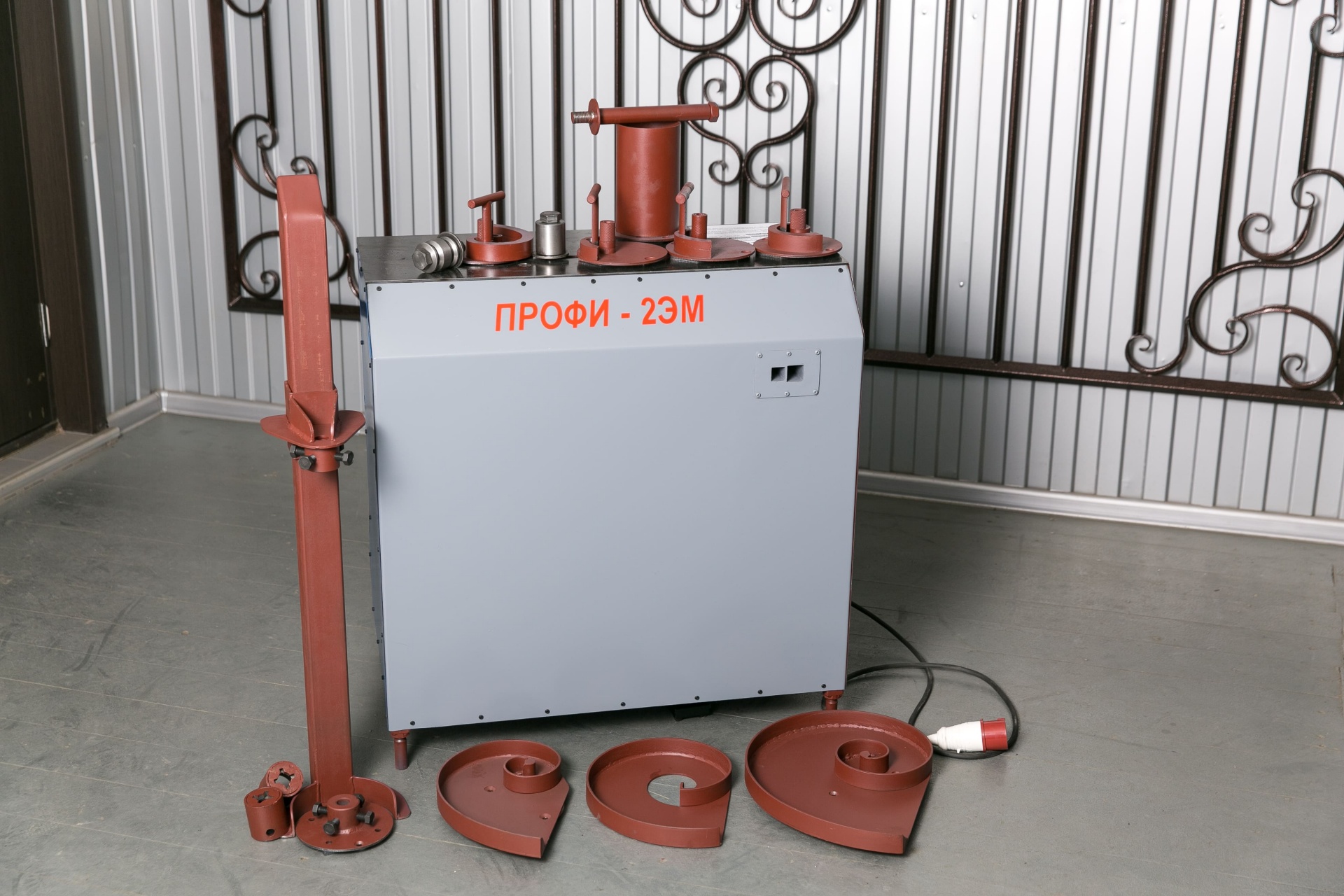 ПРОФИ-2ЭМ - это один из немногих станков который сдавливает профильную трубу U или V канавкой с 4-х сторон, а за тем гнёт её по ребру, с замятием окончания "гусиной лапкой", без нагрева (см. фото на сайте). После механической обработке профильной трубы на нашем оборудование, полученные изделия: "завиток", "вензель", "валюта", "кольцо" и т.д., смотрятся более привлекательней.