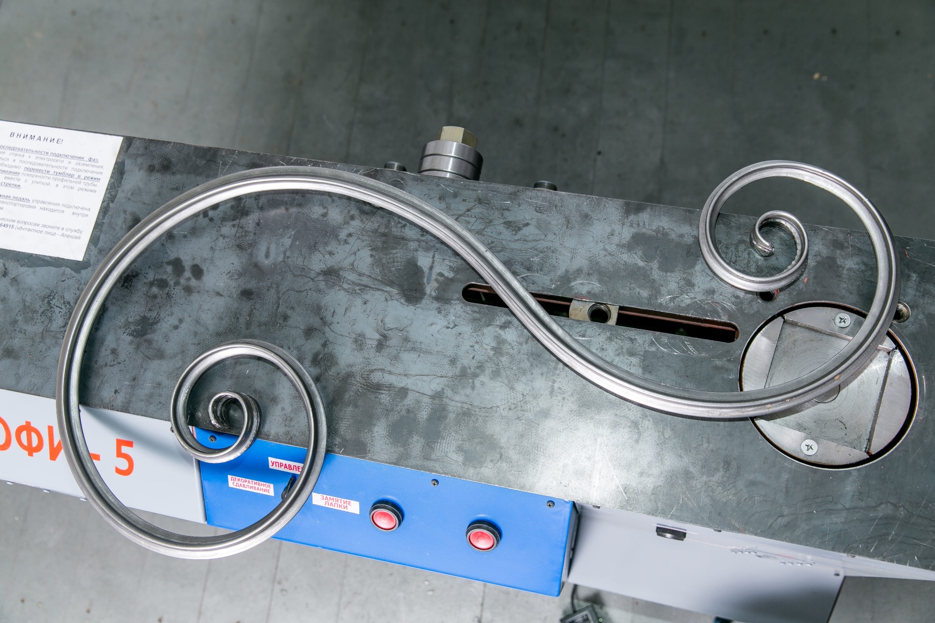 Кузнечный станок для холодной и горячей ковки ПРОФИ-5 предназначен для изготовления из профильной трубы и полнотелого металлопроката элементов художественной ковки и радиусного проката (изгиба дуги).