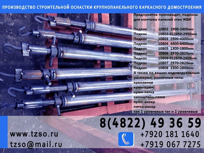 Подкосы проверены времением и применяются при монтаже жб панелей фактически по всей Российской Федерации