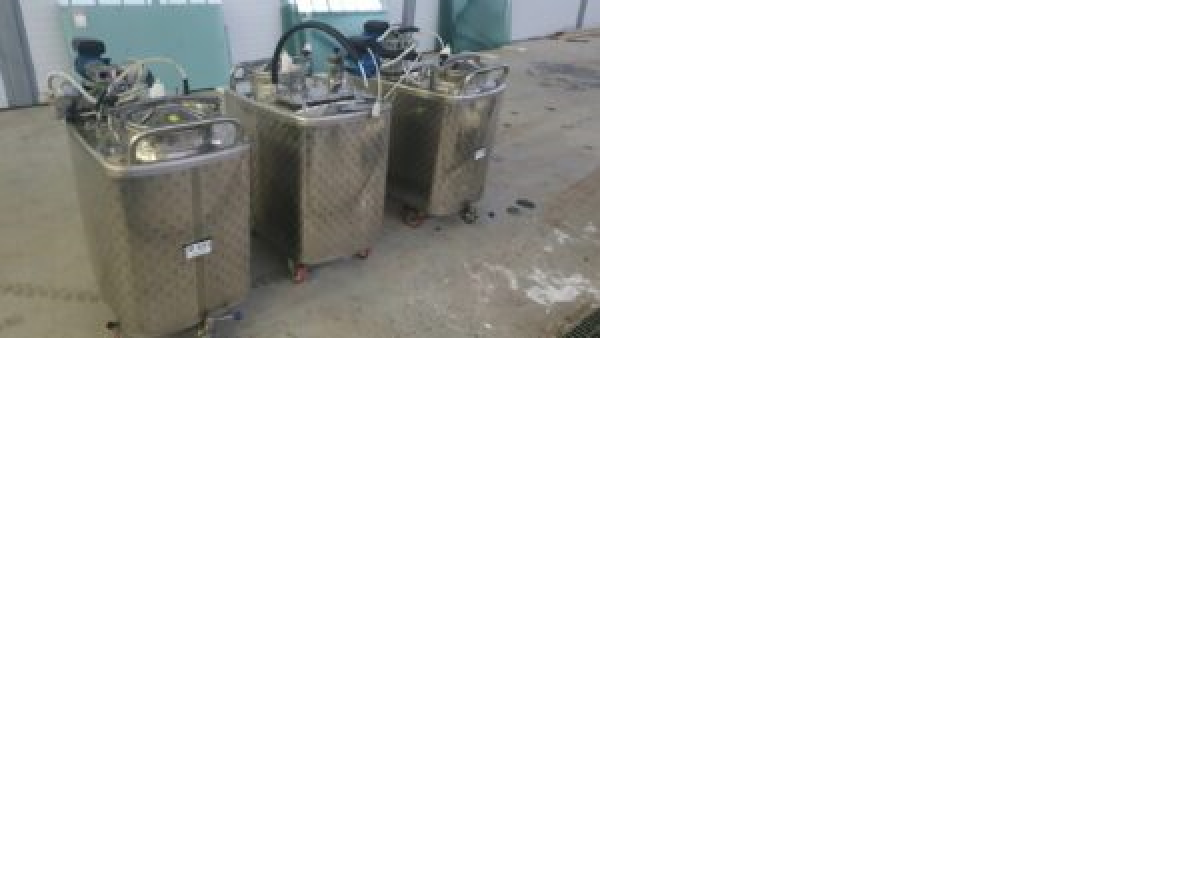 Емкости нержавеющие, объем 0,3 куб.м., с мешалкой, на колесах, прямоугольной формы.