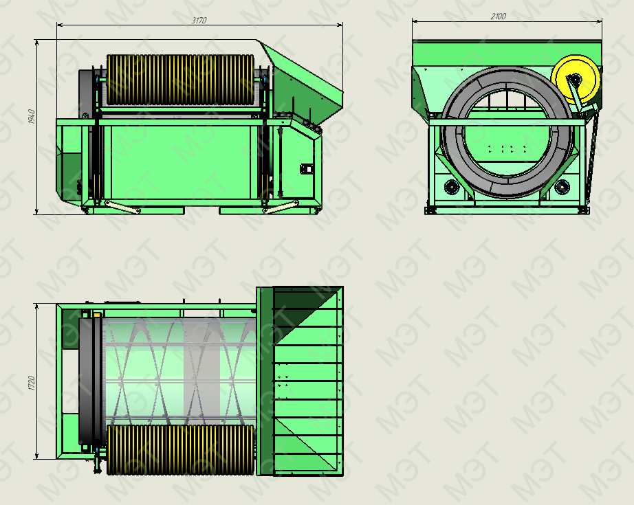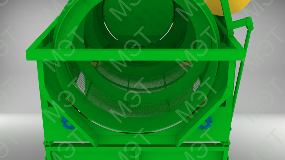 - Регулируемая щеточная система очистки сита барабана. (стандартные полипропиленовые щетки 120 х 550 мм.)