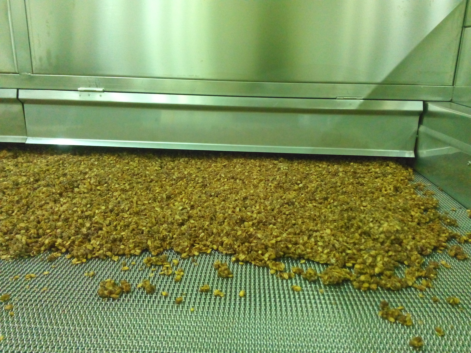 - Продукт подается на транспортерную ленту (сетка из нержавеющей стали) в