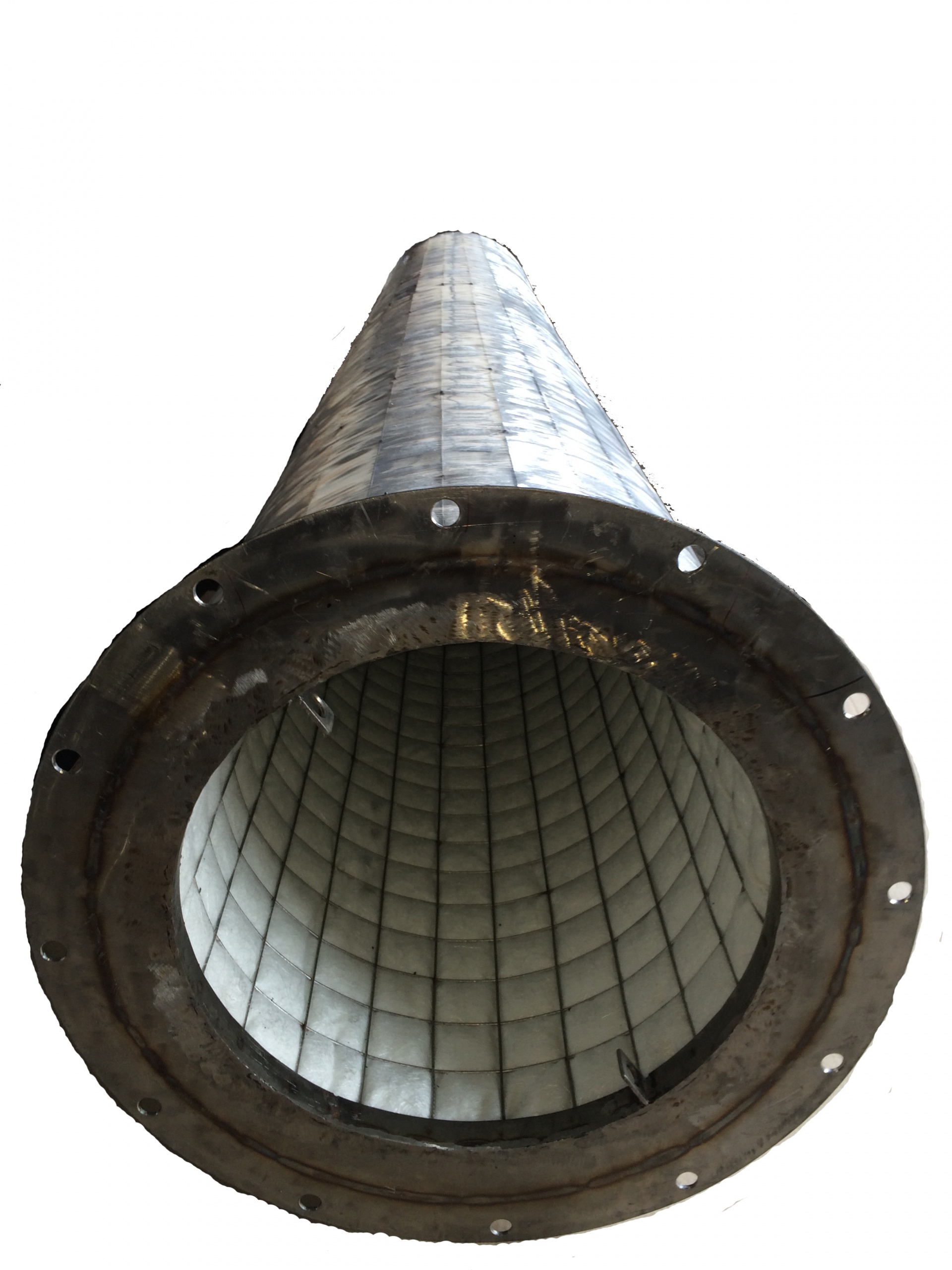Основным материалом фильтрующей части, используемым нами, является специальное химически стойкое стекловолокно FGM 145 в виде многослойного иглопробивного полотна устойчивого к воздействию концентрированных и разбавленных кислот, кроме того в зависимости от среды применения могут использоваться и синтетические волокна других типов.