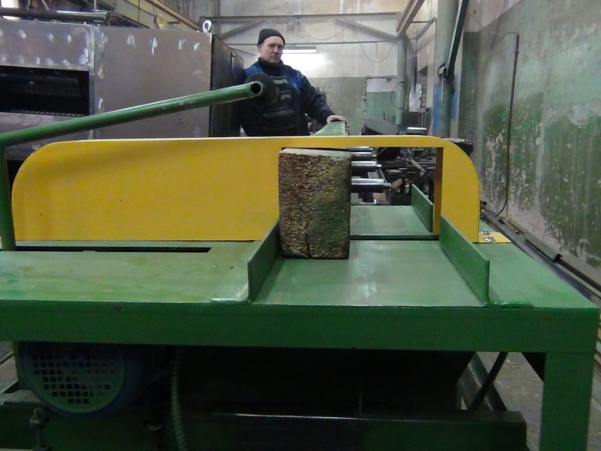Заготовка подается в станок сбоку и прижимается к упору. Для того, чтобы удалить обзольную часть заготовки, необходимо подать на себя пильный узел, после чего и происходит спил заготовки в размер. Пильный узел располагается на 16-ти регулируемых подшипниках. Для того, чтобы распилить заготовку в размер, необходимо подать на себя пильный узел.
