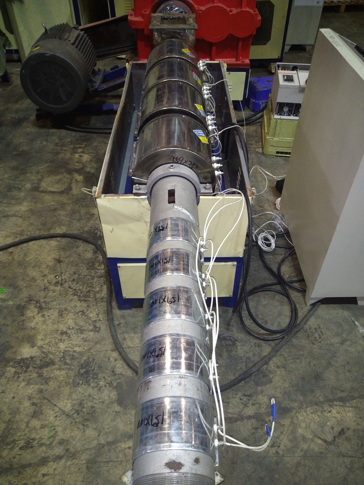 Шнековая пара: длина 2700мм, диаметр шнека 125мм, 3-5 зон нагрева, установлены стеклянные и металлические ТЭНы.