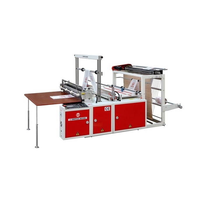 Продукт используется для производства горячей спайки и холодной резки пакетов с донной запайкой. Машина имеет несколько моделей, которые производят пакеты разного размера.