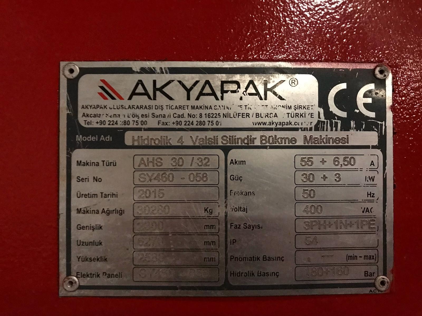 вальцы 3100 мм до 40 мм / 4-х валковый листогибочный пресс AHS 30/32-40 после модернизации Б/У - Продам в Бурсе