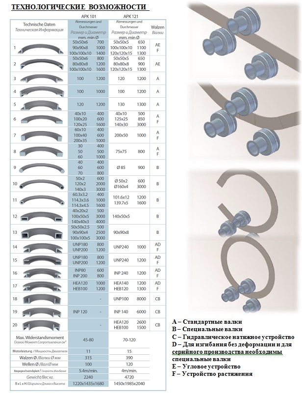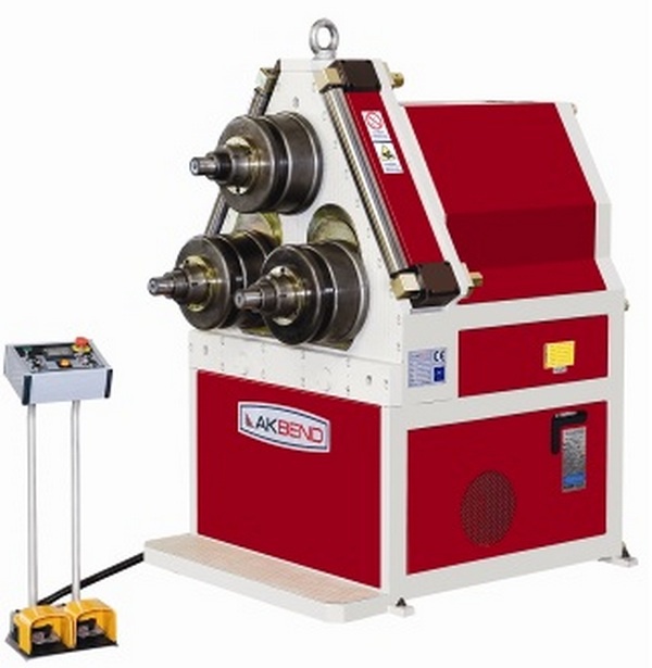 Установка пирамидального типа для гибки труб, прутков и профилей с 3-мя приводными роликами. Привод роликов состоит из гидродвигателя и планетарного редуктора. Нижние ролики имеют гидравлический привод для перемещения вверх/вниз. Движение нижних роликов - планетарное, что позволяет получать изделия с минимальными прямыми участками. Перемещение нижних роликов отслеживается по цифровому дисплею, входящему в стандартную комплектацию. Боковые направляющие валки перемещаются вручную (станок с гидравлическим приводом направляющих валков, система ЧПУ АК200NC - опции). Станок может работать как в горизонтальном, так и вертикальном положении.