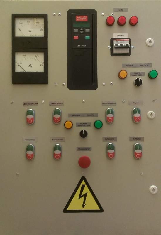 - Щит управления сушильным комплексом. , подача сырья.