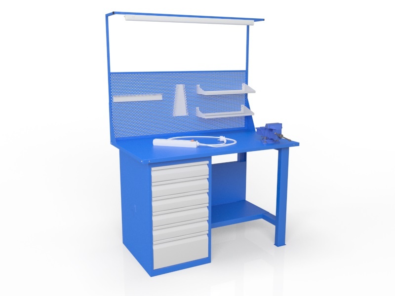 Верстак слесарный однотумбовый с экраном и тисками ВСТ-Н 12/60-ПС650-Э6.