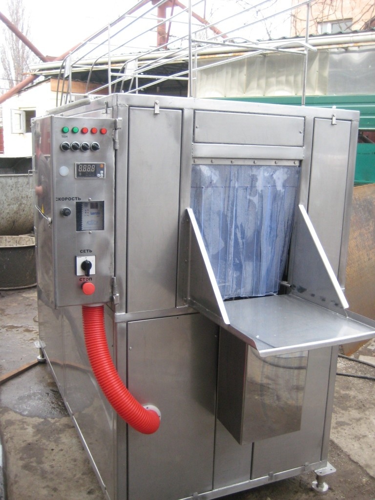 Чистые ящики конвейер выдает на специальную площадку, с которой они снимаются для дальнейшей сушки (если это необходимо).