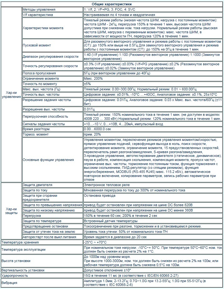 - Перегрузочная способность до 150% в течение 60 сек, пусковой момент 150% на 0 Гц (с энкодером).