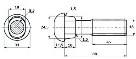 Болт стыковой М18х88 с гайкой предназначен для скрепления, накладками Р-24, стыков рельс марки Р-24. Болты укомплектовываются гайками М18.