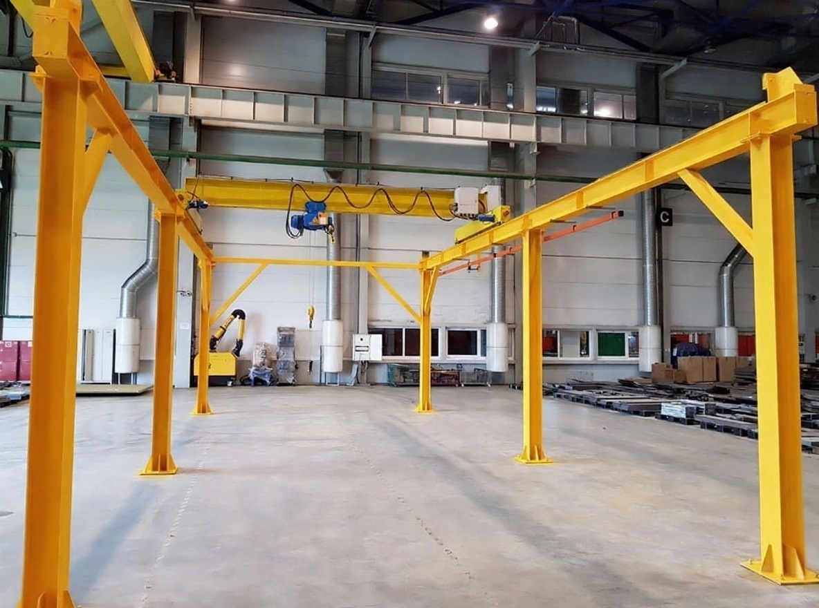 Преимущество крановых эстакад в том, что они не занимают полезное место в рабочем пространстве, располагаясь над ним.