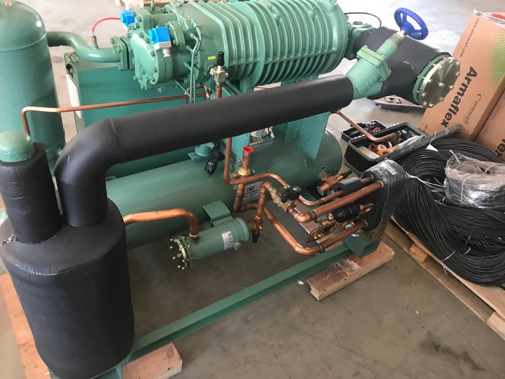 -агрегат на основе - винтового компрессора битцер модели CSH9573-240Y в комплекте с пленочным испарителем BUCO и воздушным конденсатором.