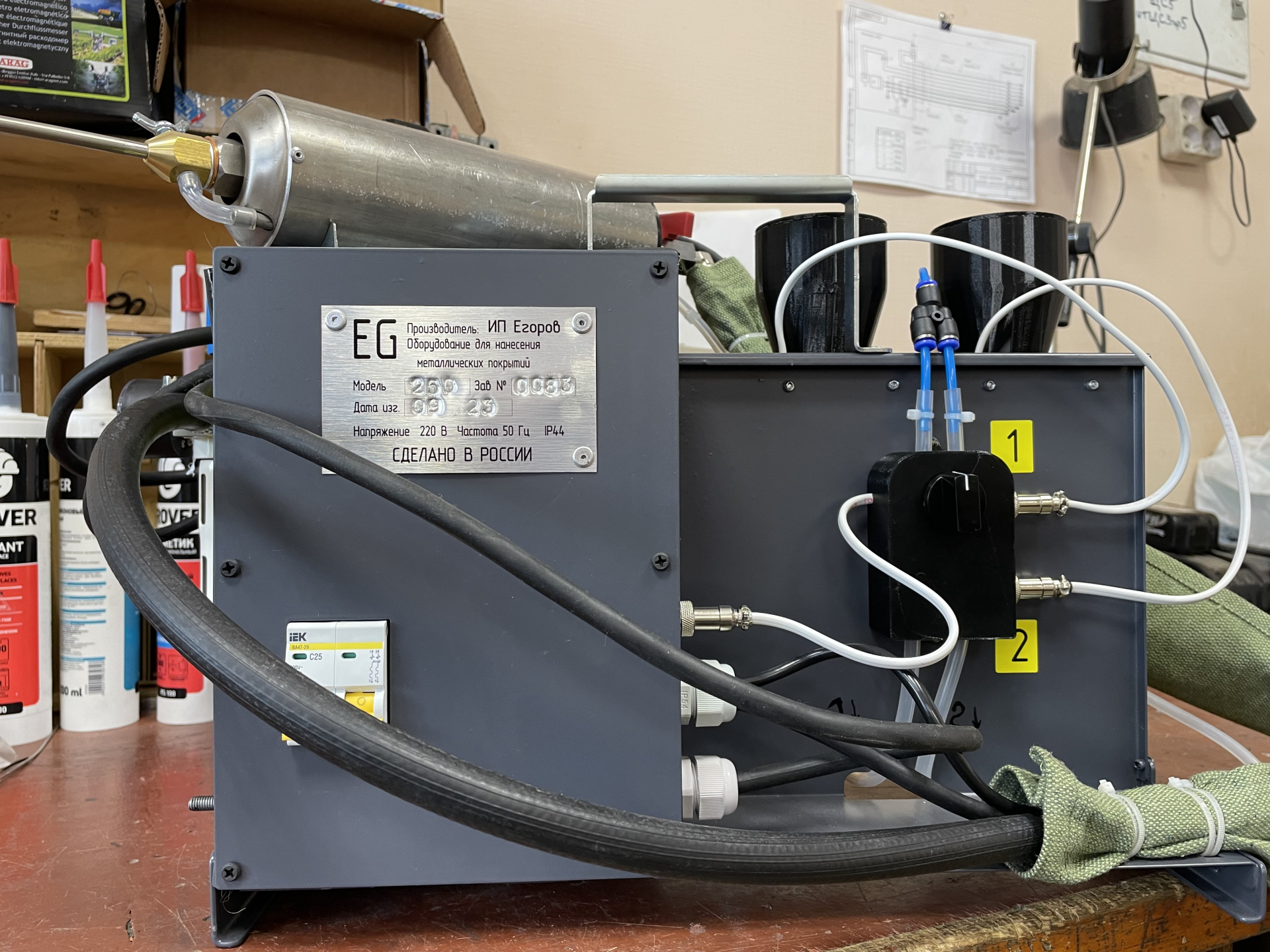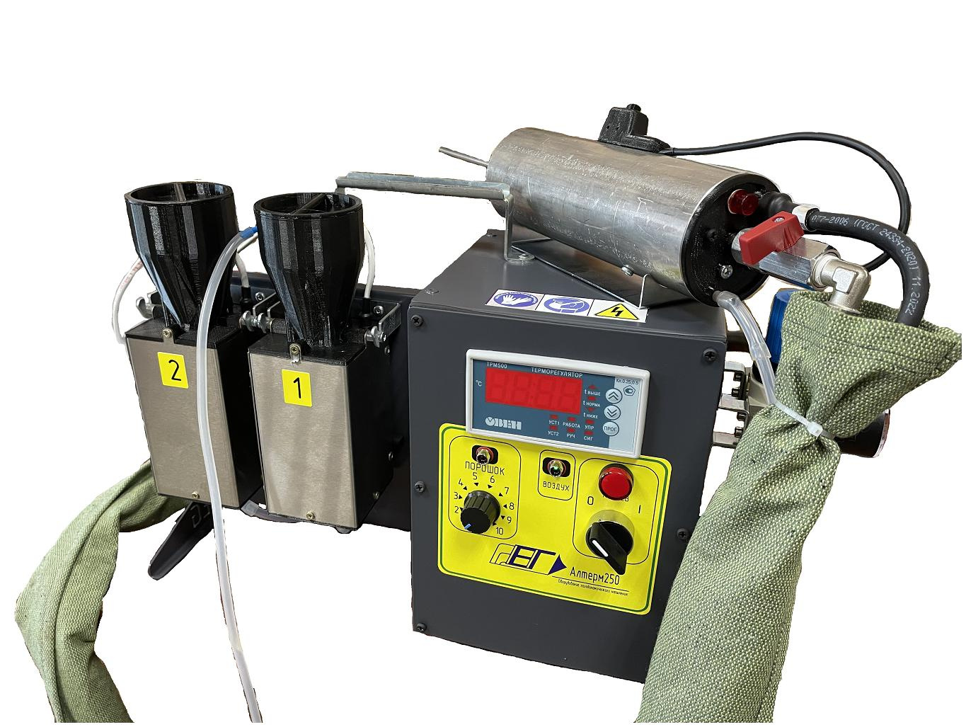 -Цифровой терморегулятор(Позваляет точно выставлять требуемую температуру для конкретных порошковых материалов,температура отображается на цифровом табло)