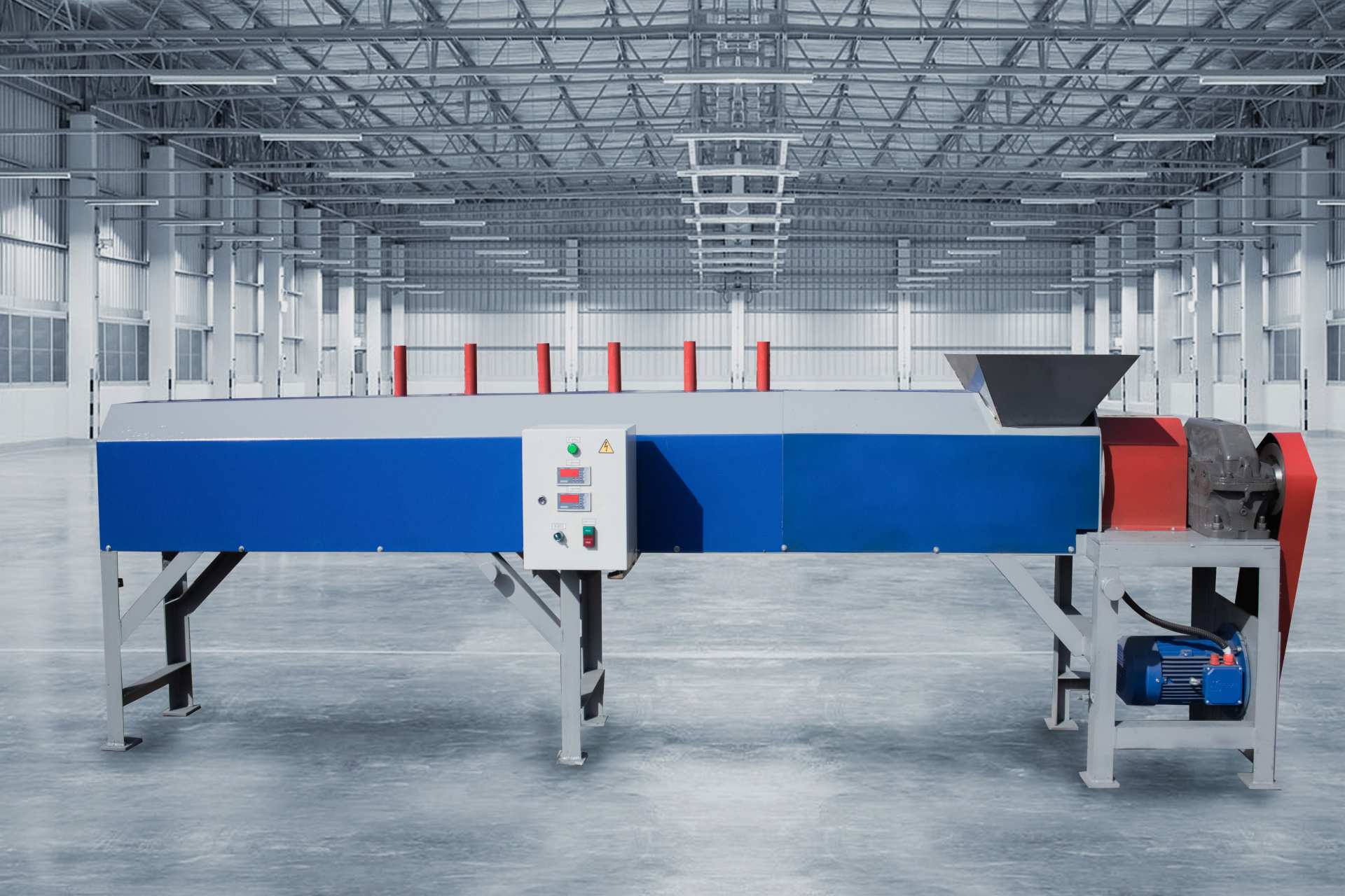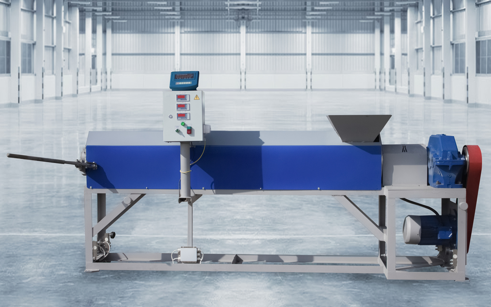 - Экструдеры (аппарат плавильно-нагревательный, реактор) Оснащены нагревательными элементами повышенной прочности и оборудованы 4 зонной системой электронного, микропроцессорного контроля температуры, а также выносным поворотным пультом управления и весовым терминалом. Производительность до 400 кг. готовой массы в час.