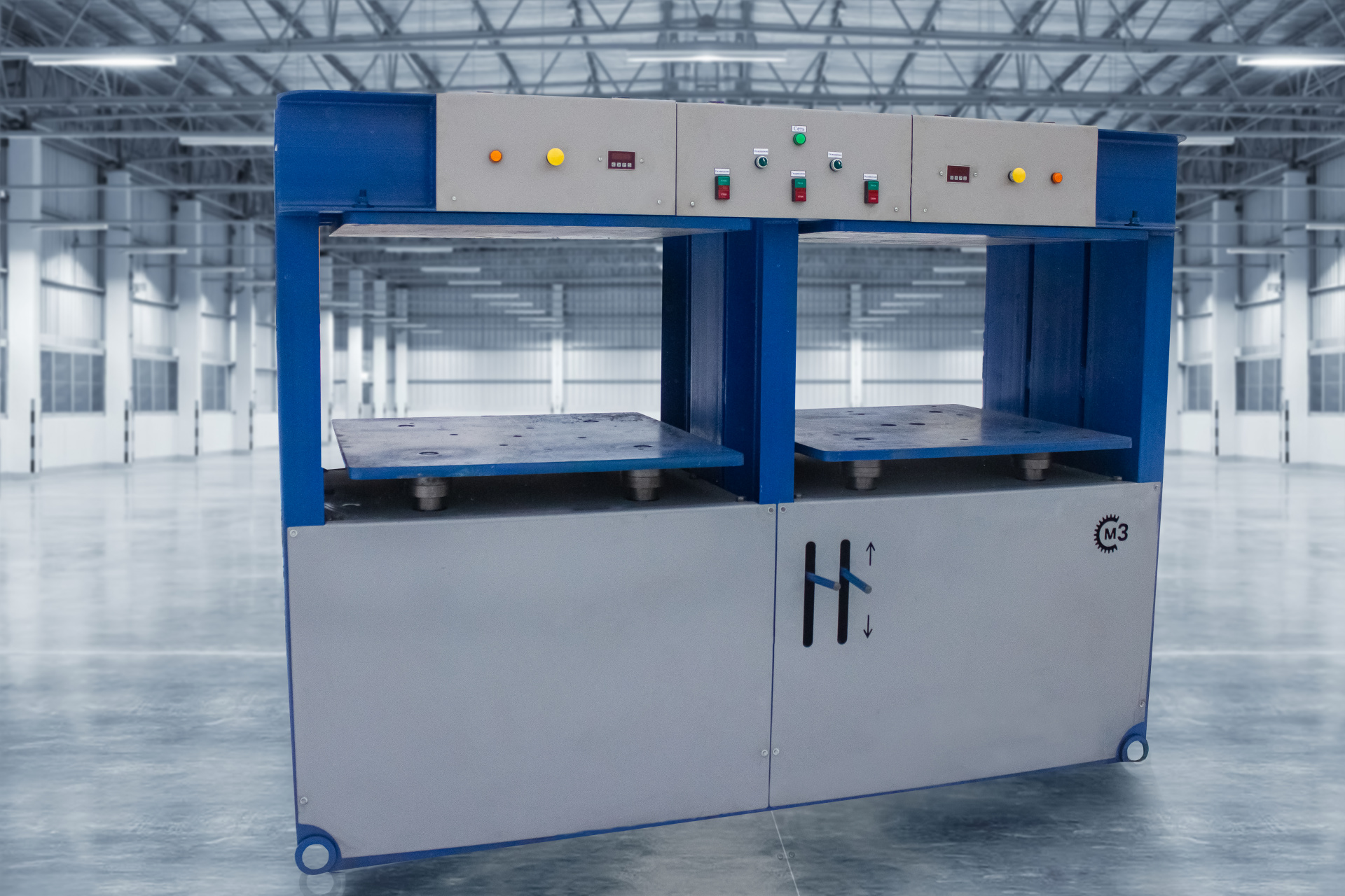 - Пресса с одним или двумя рабочими столами, работающими не зависимо друг от друга. Размеры столов от 500х500 мм. до 2000х2000 мм. Комплектуются выносной гидростанцией, электрошкафом. Усилие сжатия до 100 тн.