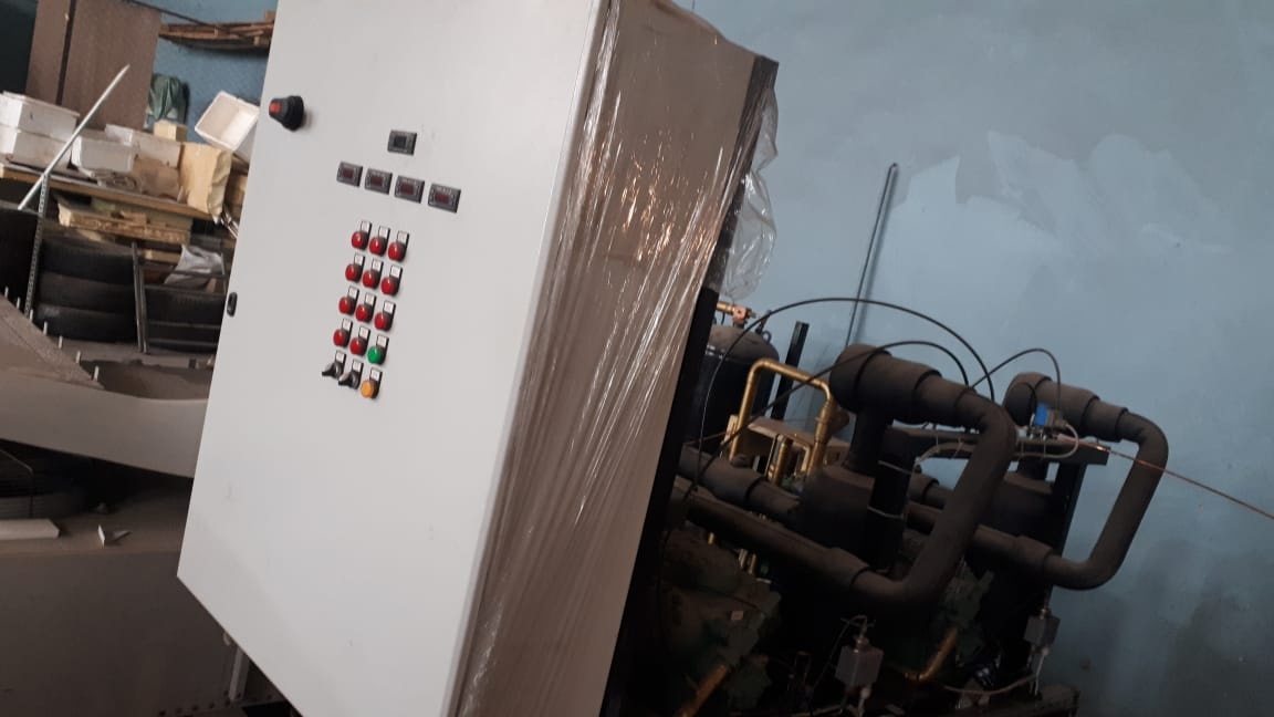 Холодильный агрегат - АНВ 3хHSК8571-140 на базе трех винтовых компрессоров BITZER Германия, в комплекте со шкафом управления холодильным агрегатом, воздушным конденсатором и воздушным маслоохладителем. -1 шт. в наличии новое оборудование.