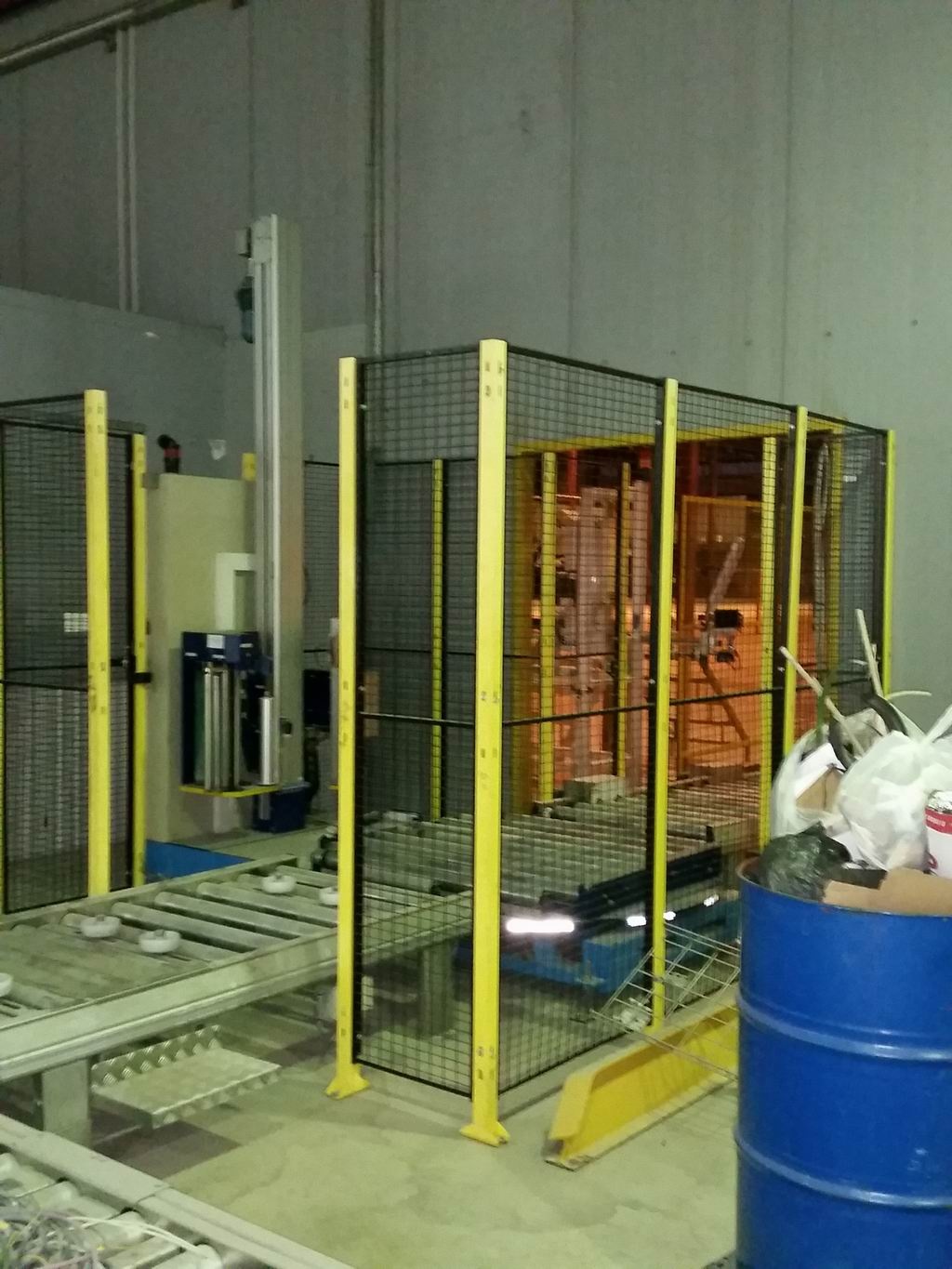 В состав входит: — накопитель пустых паллет, — подаватель паллет, — укладчик продукции на паллеты, — обмотчик