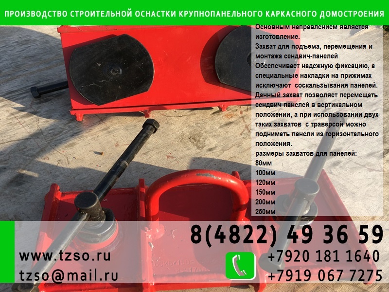 изготавливаем механические захваты для горизонтального монтажа сэндвич панелей по наличии.