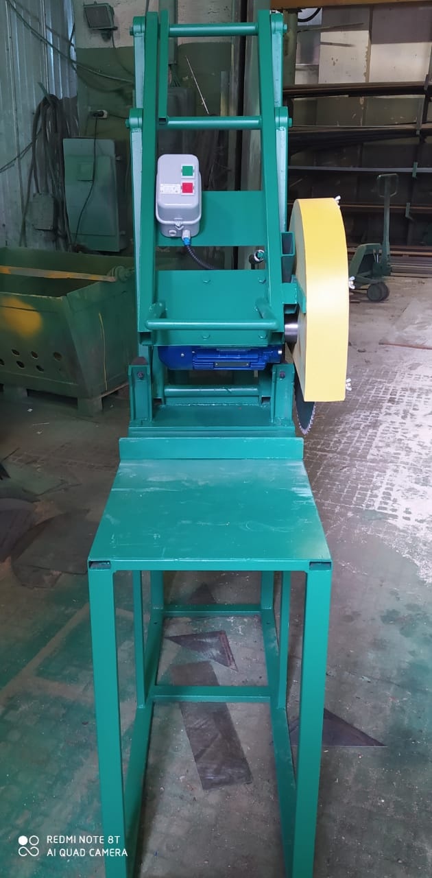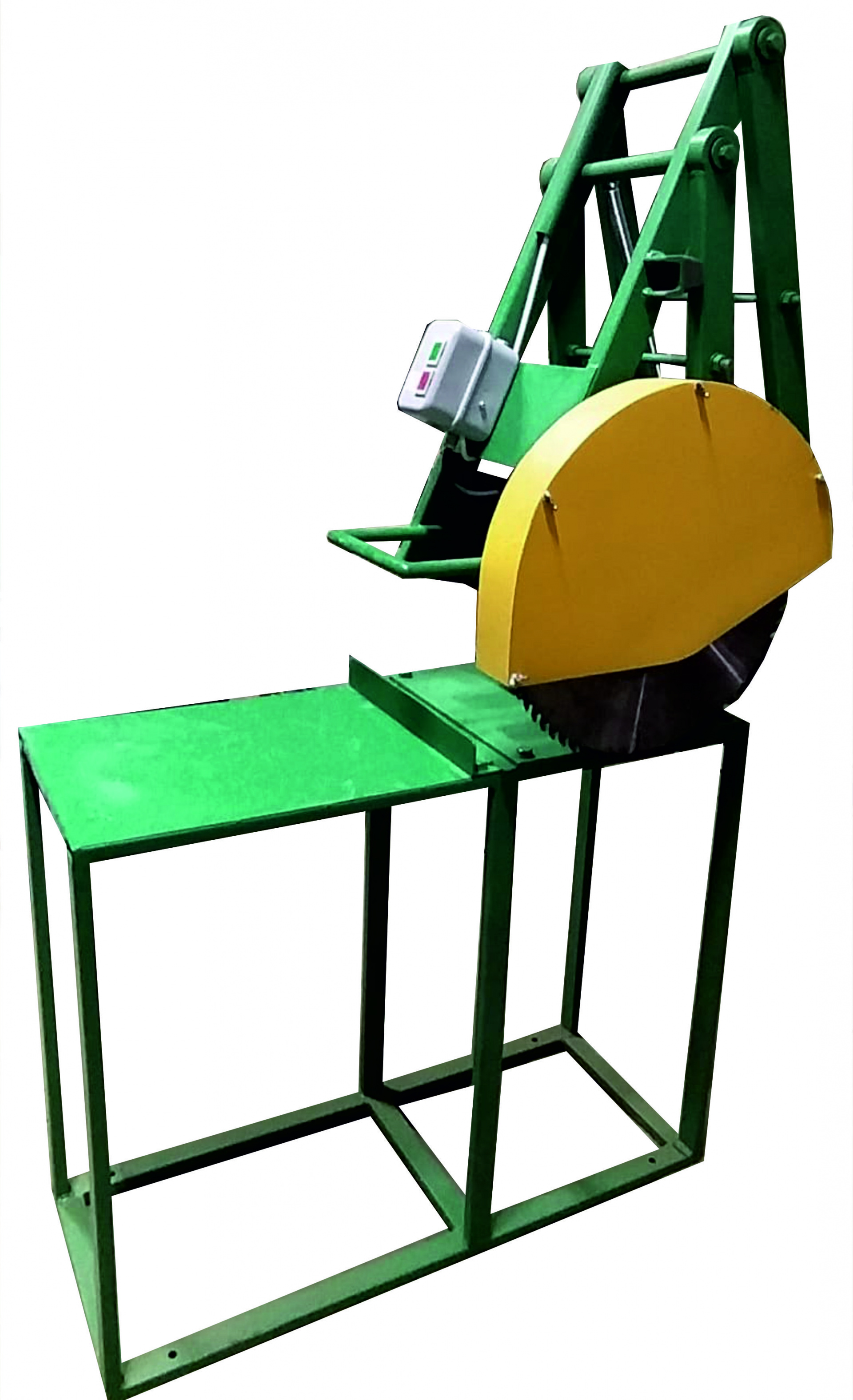 Заготовка подается в станок сбоку и прижимается к упору. Для того, чтобы удалить обзольную часть заготовки, необходимо за рукоятку потянуть рычажный механизм с пилой, после чего и происходит спил заготовки в размер.