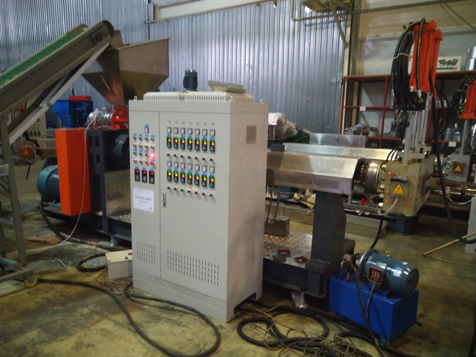 - экструдер первой стадии, двигатель 75кВт, шнек азотированный 3200/125мм, 10 зон нагрева, двухканальный безостановочный шибберный фильтр с маслостанцией.