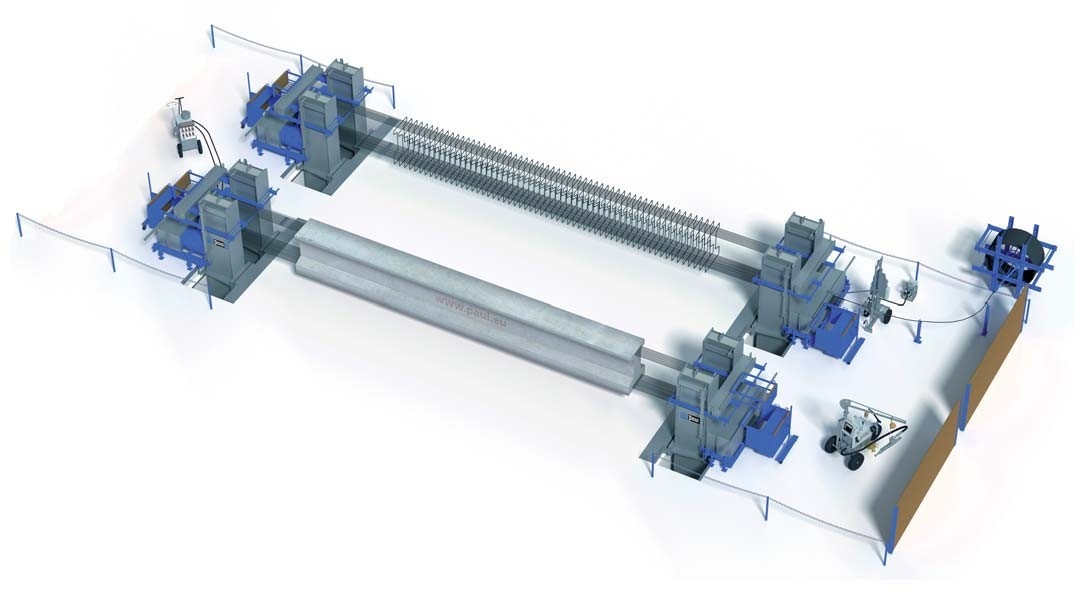 Как правило, оборудование снятия напряжения PAUL, изначально интегрируется в силовую конструкцию формовочного стенда. Эта конструкция также изготавливается и монтируется компанией PAUL. Системы снятия предварительного напряжения могут быть также установлены и синхронизированы на технологических линиях других конструкций.