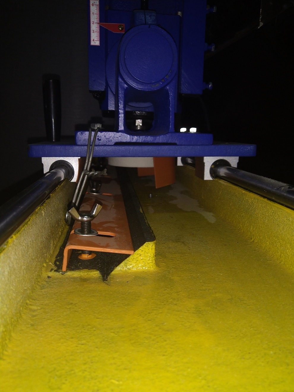 В наличии новый ручной станок для заточки плоских ножей. Простой и удобный в обслуживании, коретка ходит в ручном режиме, автоматическая подача охлаждающей жидкости.