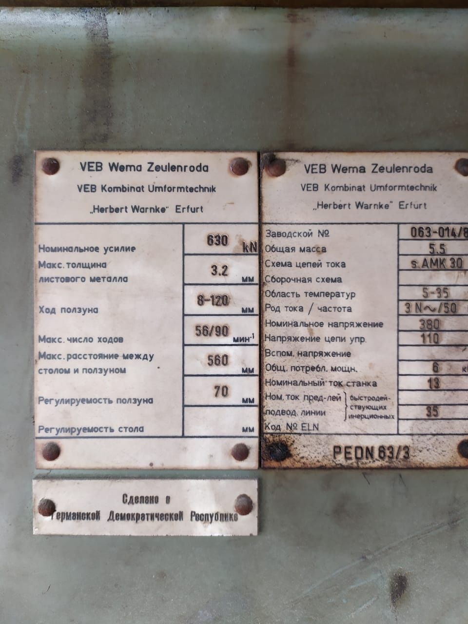 Продам пресс эксцентриковый Erfurt PEDN 63/3 б.у ,состояние отлично.