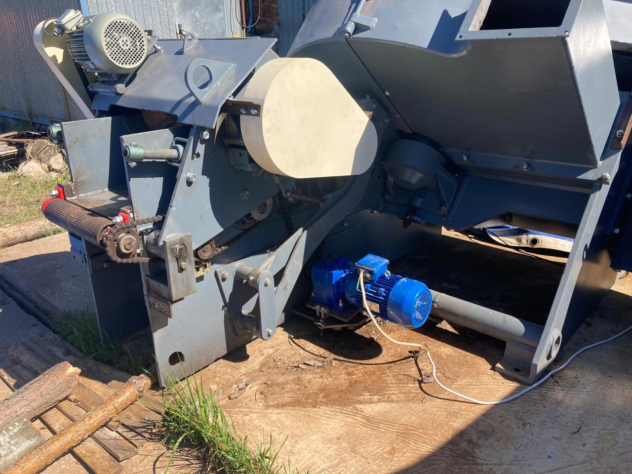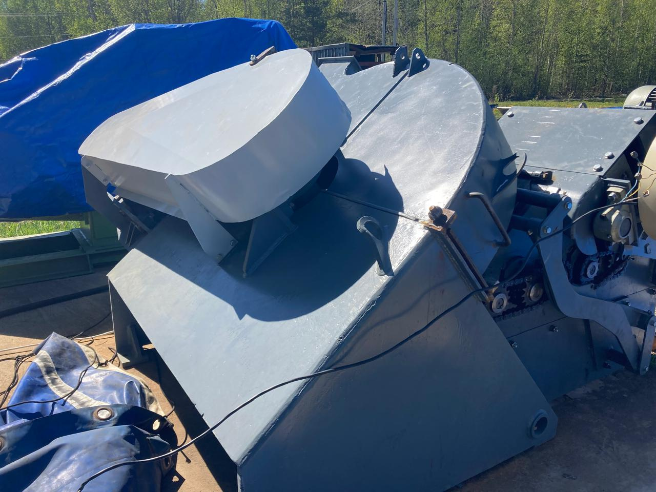 9. Финская дисковая рубительная машина с приводом от ВОМ, можно поставить эл/двигатель. Диаметр диска 1,2м, гидроподача, верхний выход щепы. Станок в процессе восстановления.