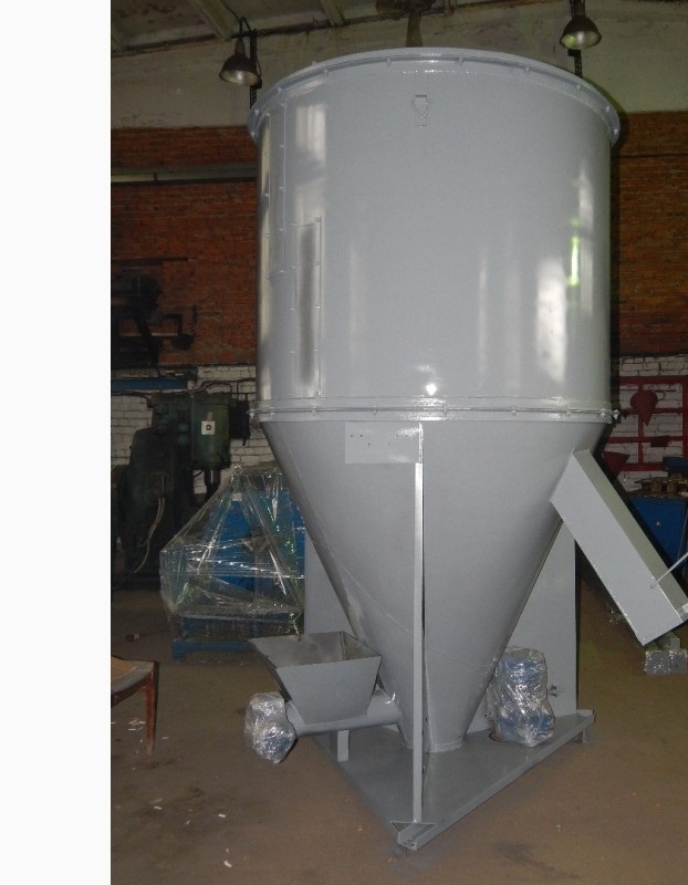 Шнековый смеситель, используется для обеспечения смешивания сразу нескольких компонентов, с целью получения наиболее эффективного и полезного комбикорма. Сама конструкция, состоит из вертикального шнека, рамы и бункера. Для фильтрации готового продукта от пыли, существуют специальная система аспирации. Эта система оснащена несколькими мешками для сбора пыли.