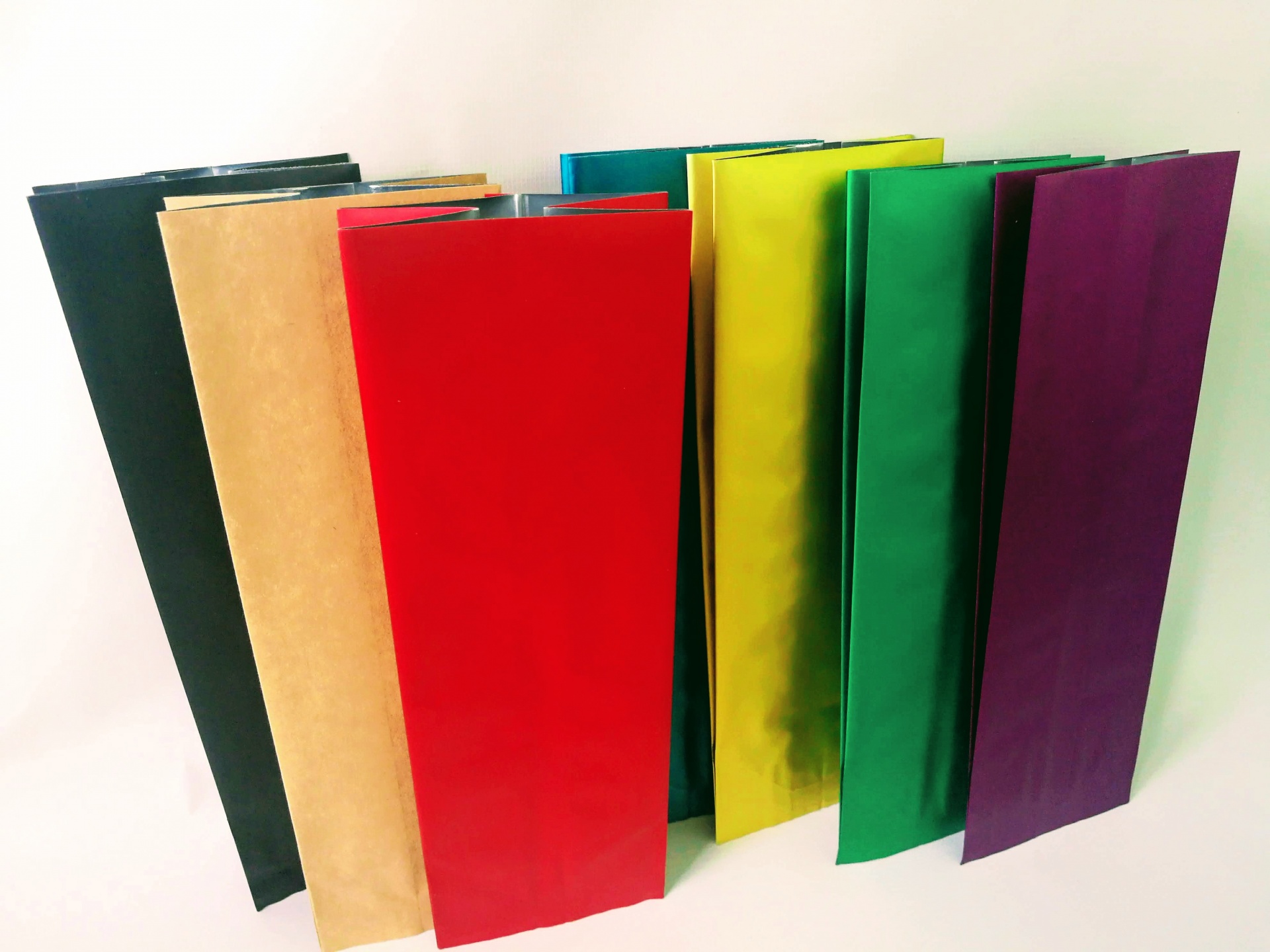 Цвета пакета: крафт, белый, черный, золото, серебро, коричневый, красный, зеленый, бирюзовый, фиолетовый.