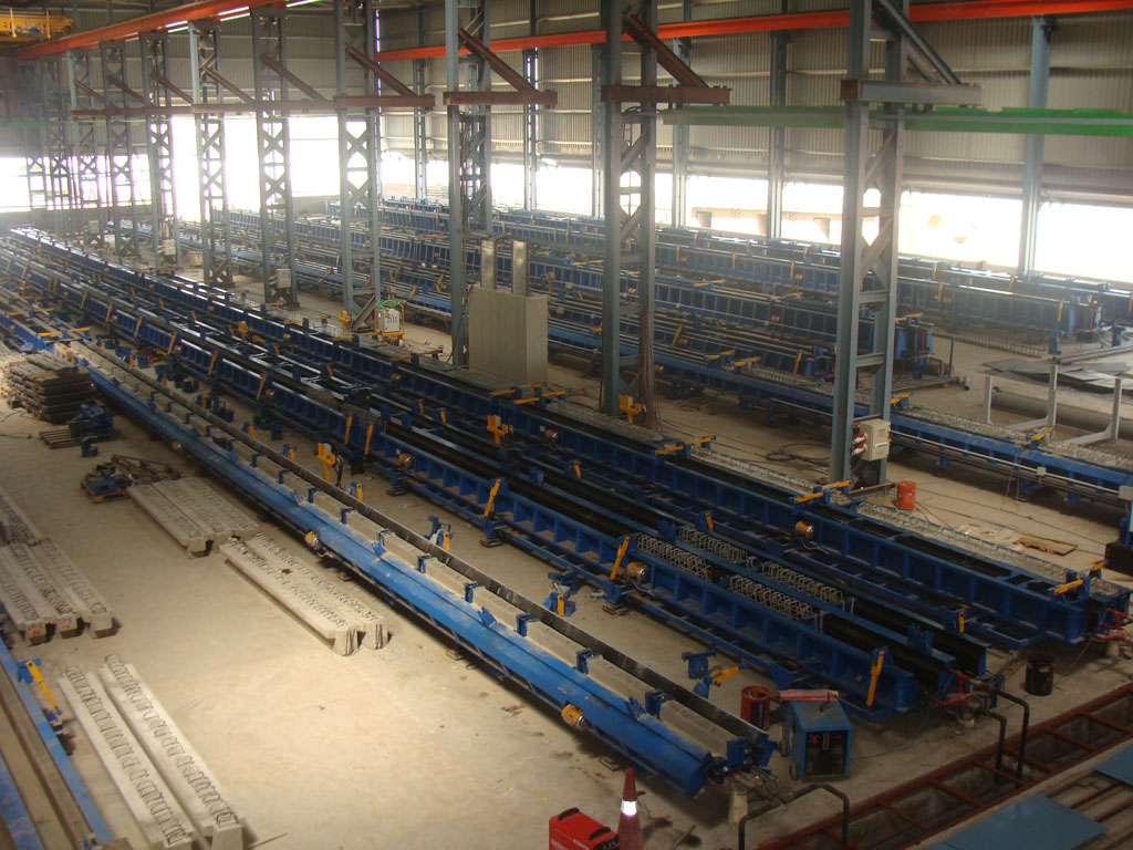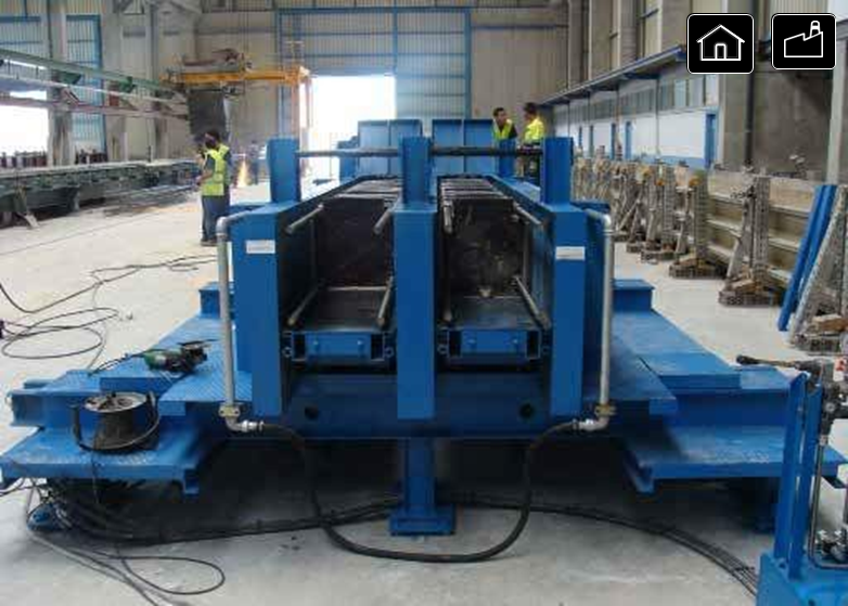 Эти двухручьевые стенды позволяют одновременно изготавливать 2 ряда колонн с различной толщиной, шириной и длиной, а также с различным количеством консолей и их расположением по длине и оси.