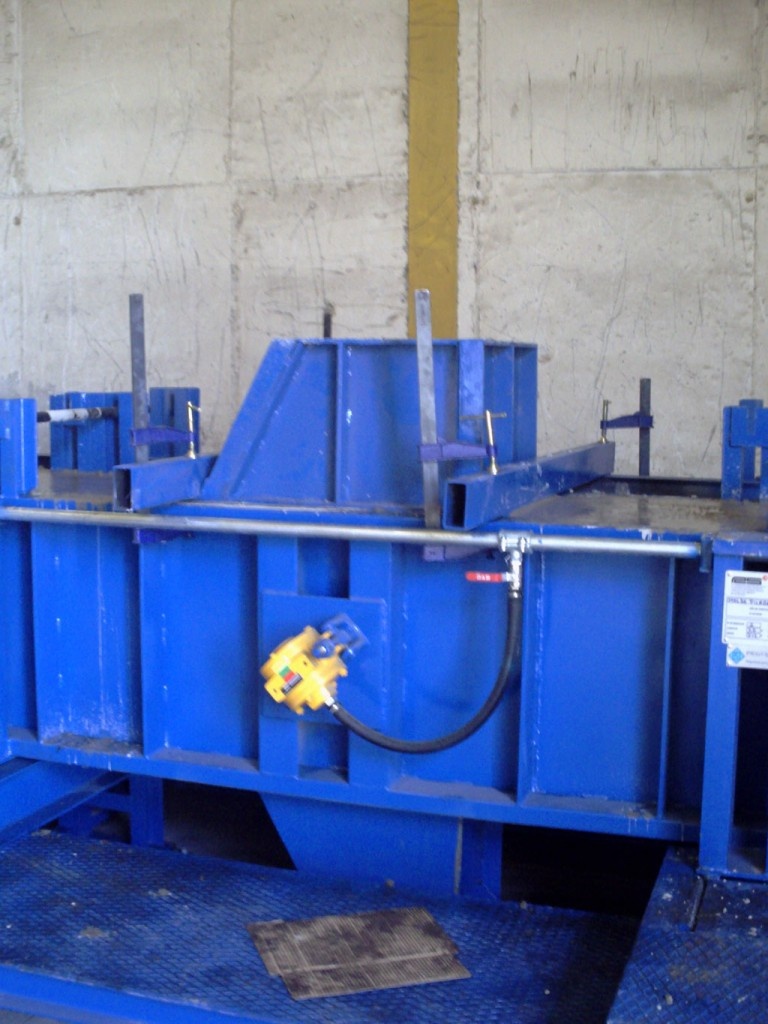 Помимо регулировки высоты днища, гидравлический привод обеспечивает также раскрывание бортов формооснастки с помощью комплекта синхронизированных гидроцилиндров.