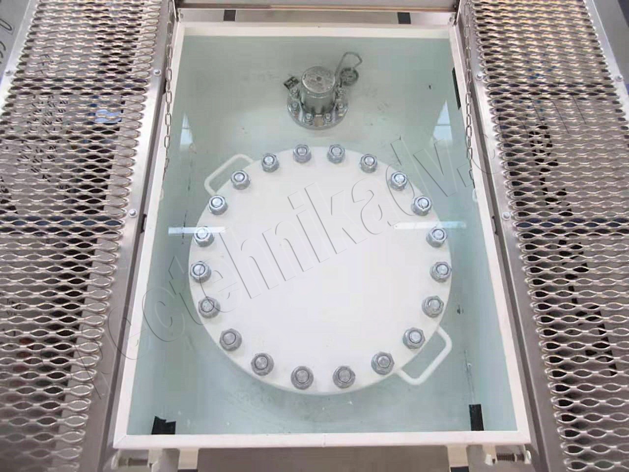 | Защитные короба | Два короба с закрывающейся крышкой; В центральном находится люк и предохранительный клапан; Задняя разливочная коробка содержит соединение газовой фазы и соединение жидкой фазы. Дренажные трубы установлены на каждой стороне каждой верхней коробки. |