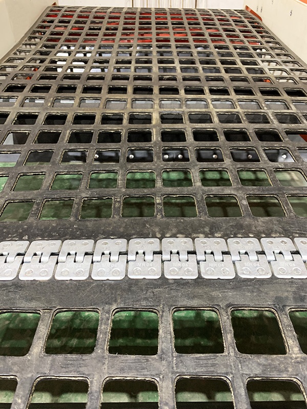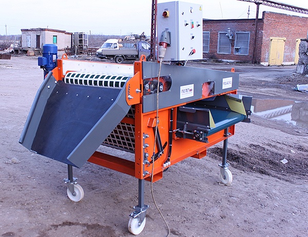 Калибровка овощей на 2 фракции с помощью сетчатой ленты с ячейками любого размера.