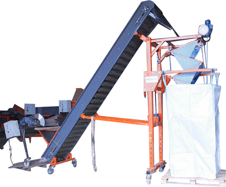 Бережное автоматическое наполнение контейнеров и биг-бегов продуктом на две стороны.