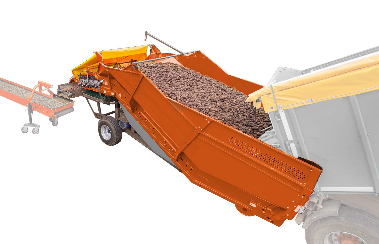 Приём продукта из самосвалов, прицепов, опрокидывателей, транспортёров, отбивка мусора, калибровка овощей по размеру.
