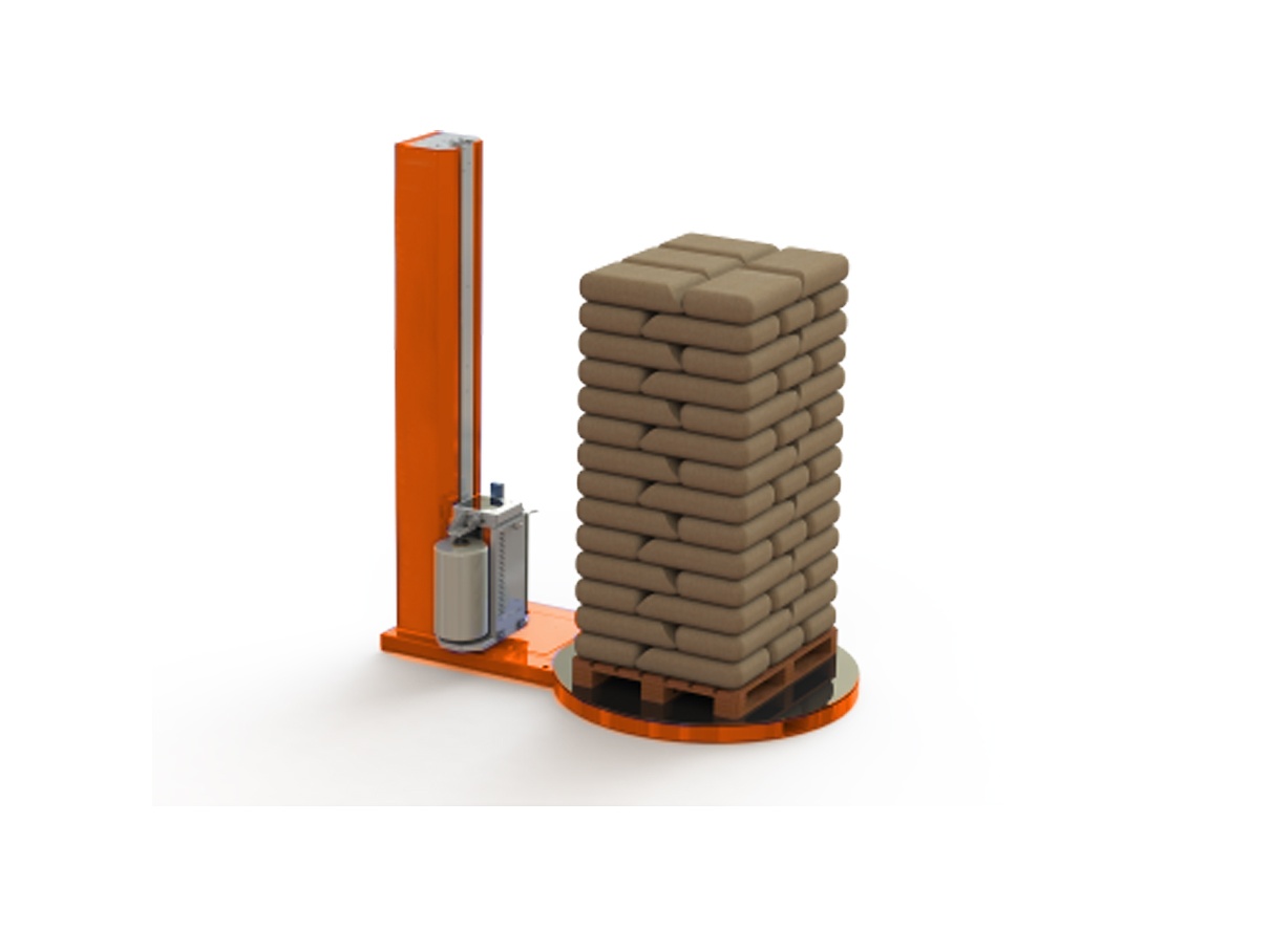 Автоматическая обмотка паллет/поддонов, установленных на крутящийся стол в сетку/плёнку. Обмотчик может быть установлен в качестве отдельной единицы оборудования или интегрирован с паллетайзером.