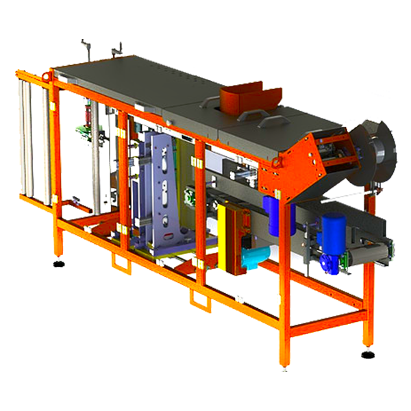 Автоматическая загрузка овощей и запайка полиэтиленового пакета "полурукав" весом от 0,5 до 5 кг.