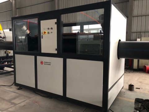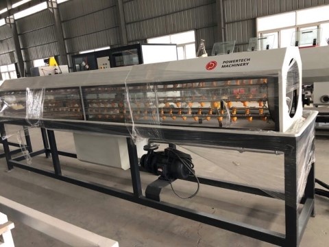 Вакуум-калибровочную ванну, которая служит для калибровки внешней стенки трубы вакуумом. Ванна оснащена водяным контуром для подачи в калибратор, необходимым набором вакуумных и водяных насосов, системой регулировки по X (горизонту) и по Y (высоте).
