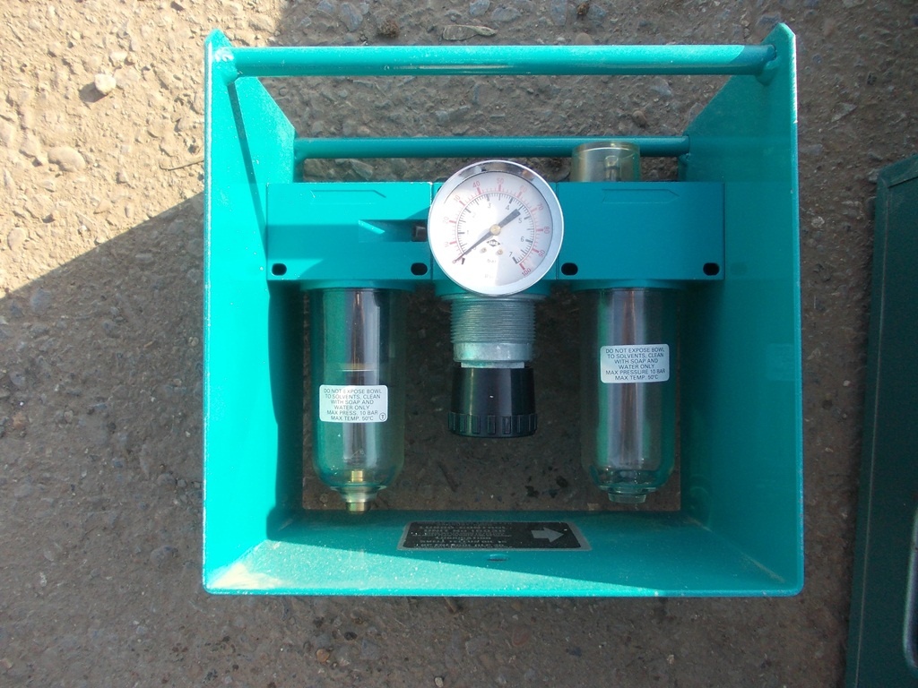 В комплект входит: мультипликатор, реакционная опора, блок подготовки воздуха, шланг, металлический ящик.
