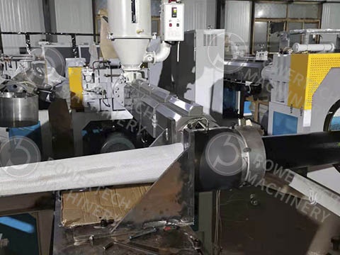 Одношнековый экструдер серии SJ, который наиболее подходит для производства необходимых размеров. Толщины слоев и диаметров могут регулироваться.