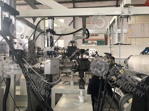 Одношнековый экструдер серии SJ, который наиболее подходит для производства необходимых видов листов. Для производства многослойных листов требуется группа экструдеров.