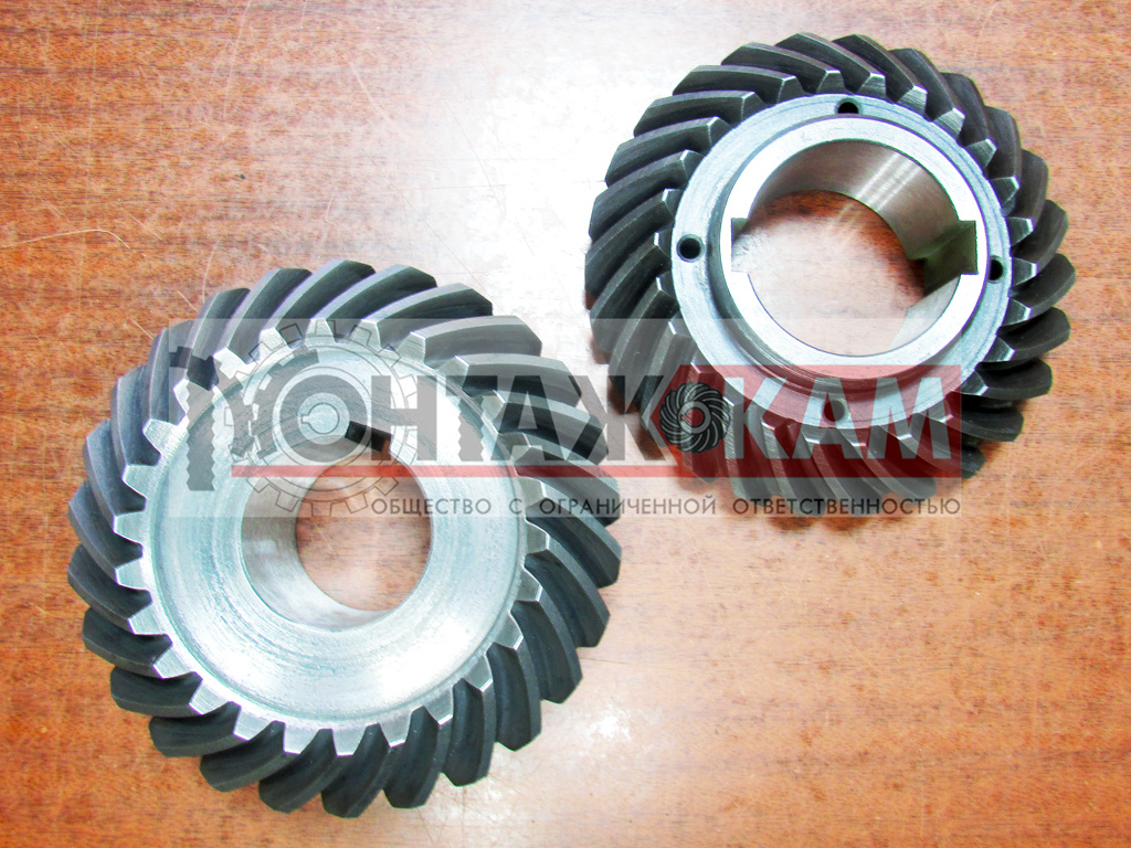 Специалисты ООО «Монтаж-КАМ» изготовят на заказ конические шестерни поворотной головки фрезерного станка 6Р12, 6М12: Z=26 (отверстие диаметр 62; 2 шпон.паза по 16 мм) и Z=26 (отверстие диаметр 50 мм, шпон.паз 12 мм) с круговым зубом.