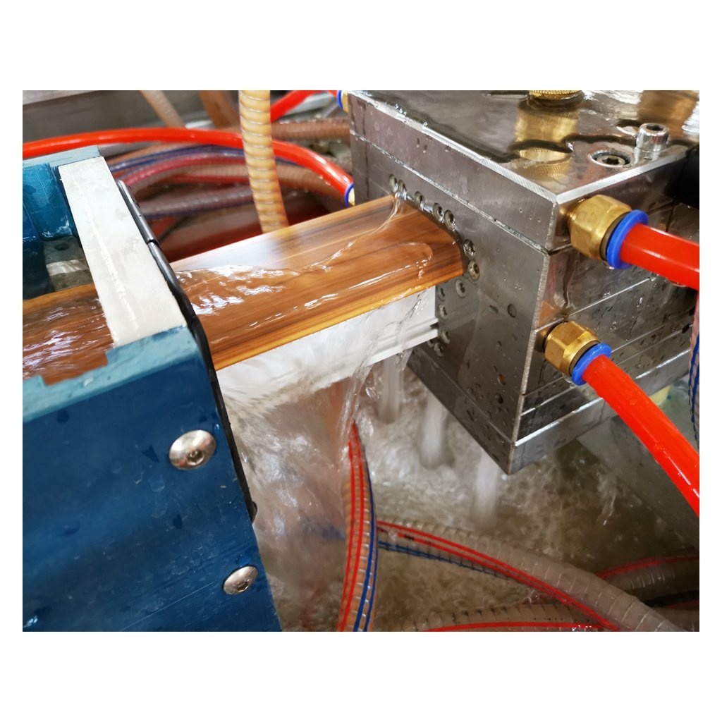 Это экструзионная линия для производства профилей из ПВХ используется Европейскую технологию , все электрические часть является инзвестными брендами в мире , например Siemens мотор , ABB инвертор, Ormon температурный регулятор , Schinder электроаппарат . PLC интеллигентная контрольная система .
