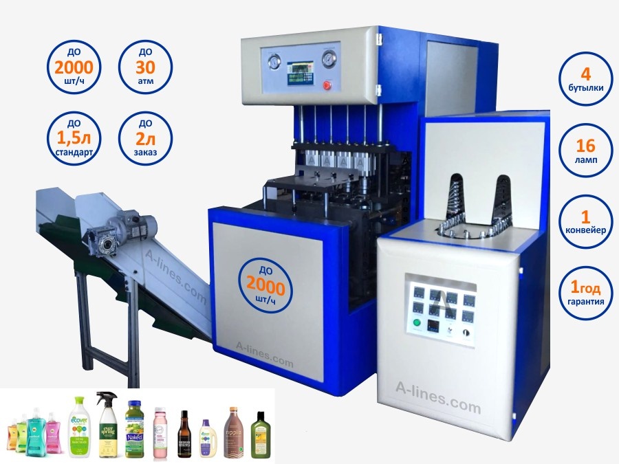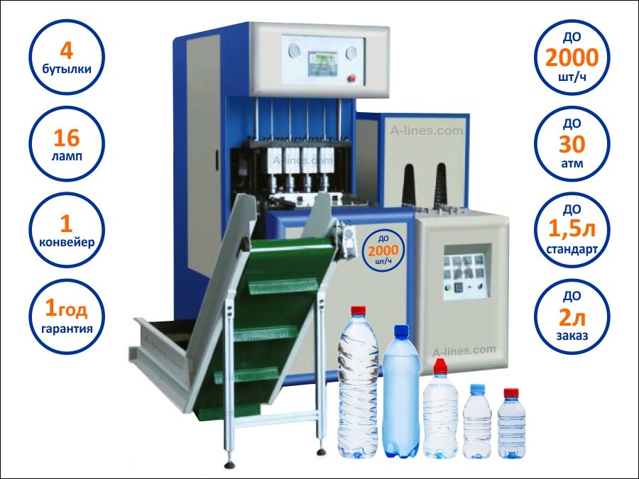 Производительность выдува пэт бутылок до 2000 бутылок в час,