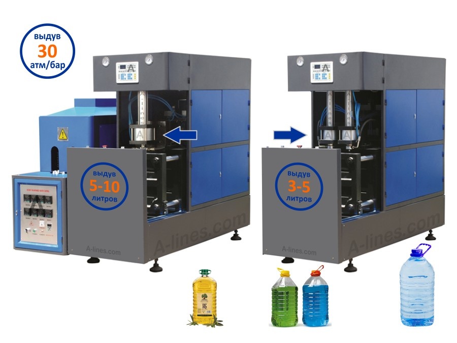 Объём выдуваемых ПЭТ бутылок и банок - 3-5, 5-10 литров,